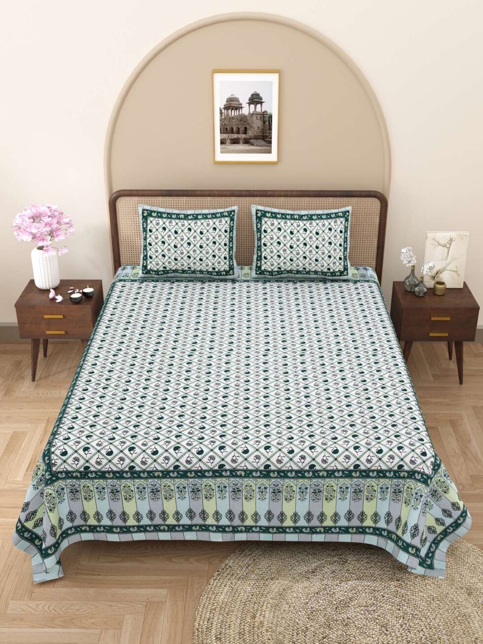 100% Pure Cotton Traditional Printed Bedsheet for Double Bed King Size Bedsheet with 2 Pillow Covers